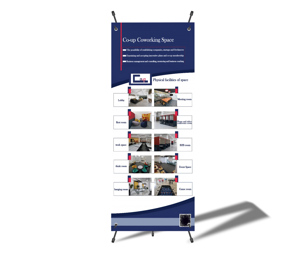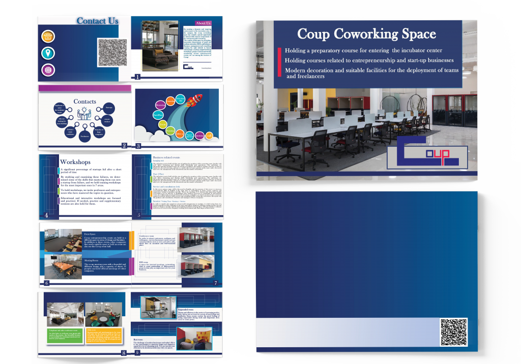 Co-up audiences are innovative, creative, and entrepreneurial people. It was very important for the employer to have minimal and uniform designed items. They also wanted some of them have lots of images and shape connection. To prepare a color palette, we went to the colors that were used in the space and tried to choose the colors that show a more appropriate concept of the co-up using the psychology of colors. For the logo, the typography model was chosen to design a minimal and simple logo. Also, when designing other items, we tried to have simple designs that are uniform to satisfy the client.